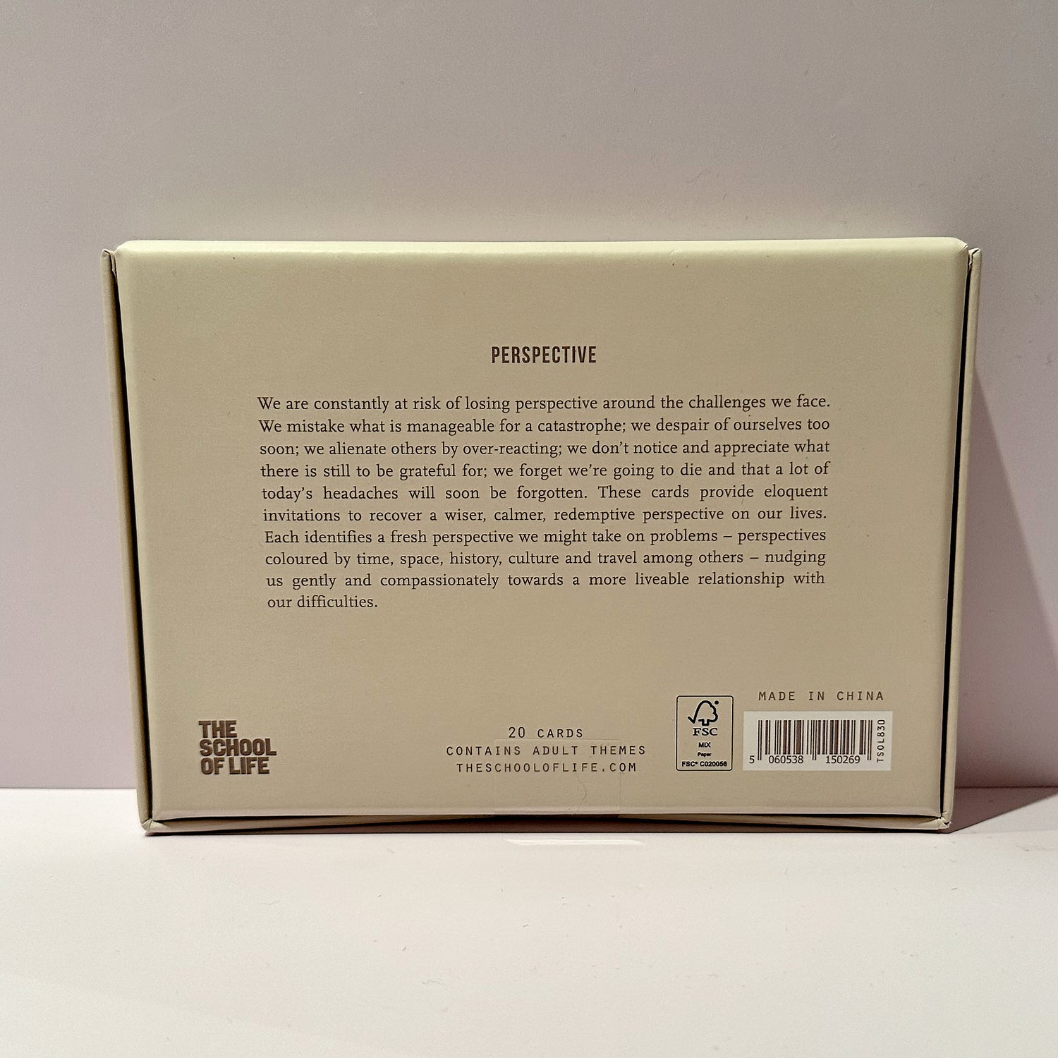 We are constantly at risk of losing perspective around the challenges we face. We mistake what is manageable for a catastrophe; we despair of ourselves too soon; we alienate others by over-reacting; we don’t notice and appreciate what there is still to be grateful for; we forget we’re going to die and that a lot of today’s headache will soon be forgotten. These cards provide eloquent invitations to recover a wiser, calmer, redemptive perspective on our lives.